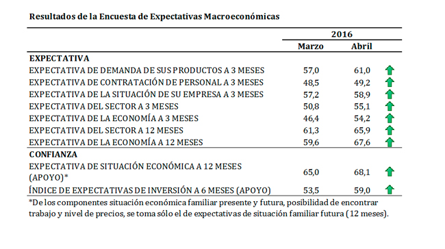 MEJORAN INDICADORES DE EXPECTATIVAS EMPRESARIALES EN ABRIL