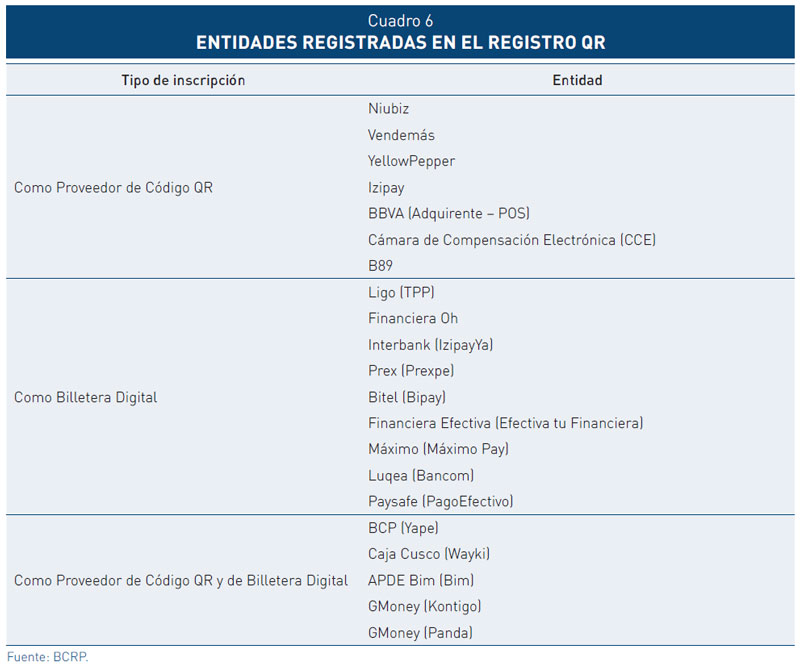 15. Registro del Servicio de Pago con Códigos QR: En el primer semestre de 2025 se registraron tres nuevas entidades: Al 31 de julio de 2025, el registro de pagos con QR cuenta con 7 Proveedores de Códigos QR, 9 Proveedores de Billetera Digital y 4 Proveedores de Códigos QR y Billetera Digital.